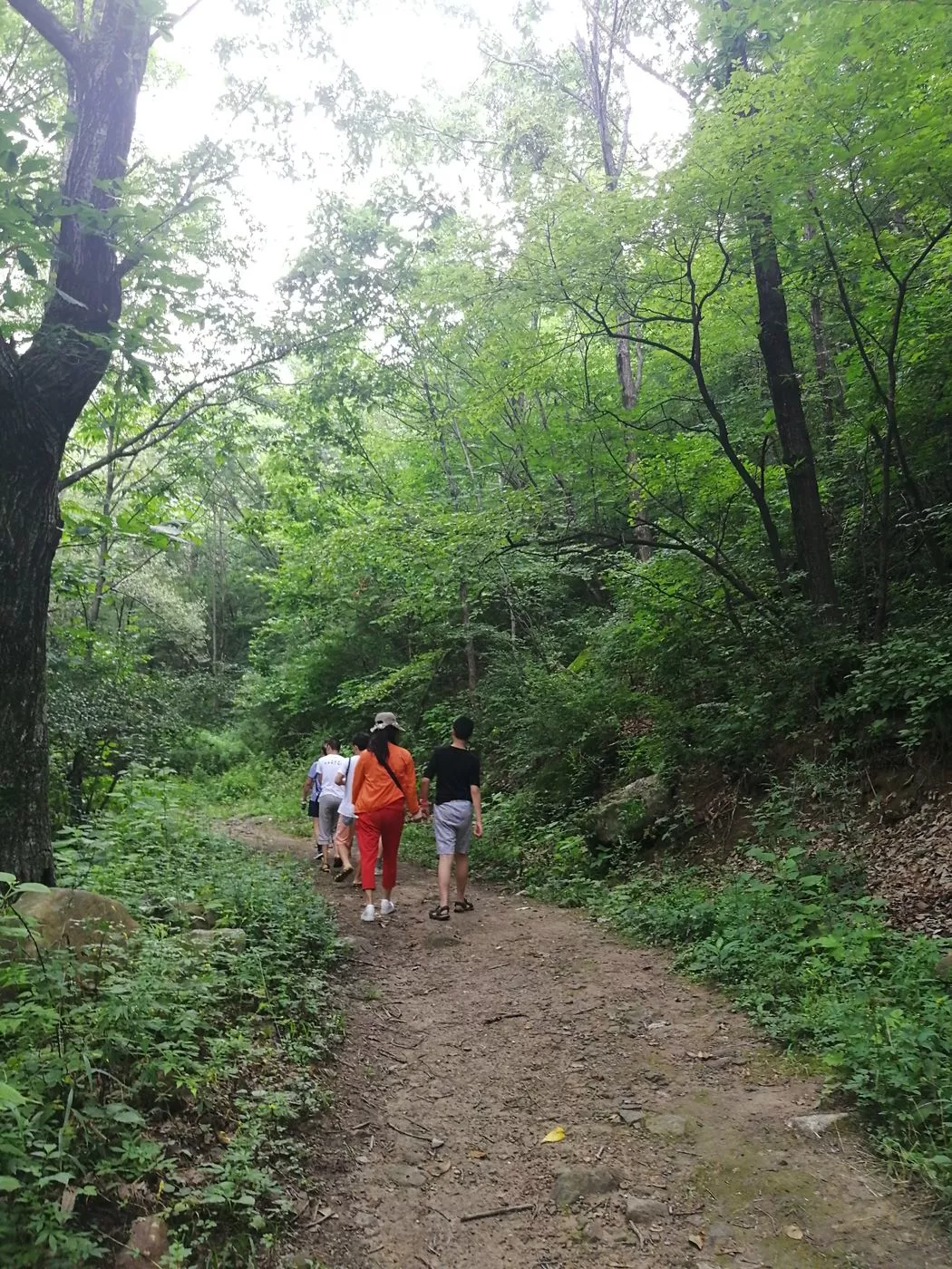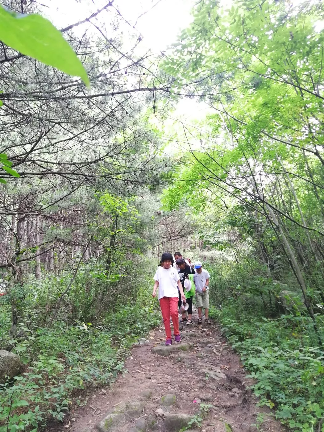 起初队伍还很集中,但由于大家身体素质差异加上山路比较窄,爬到一半时大家开始以小团队形式爬山了。