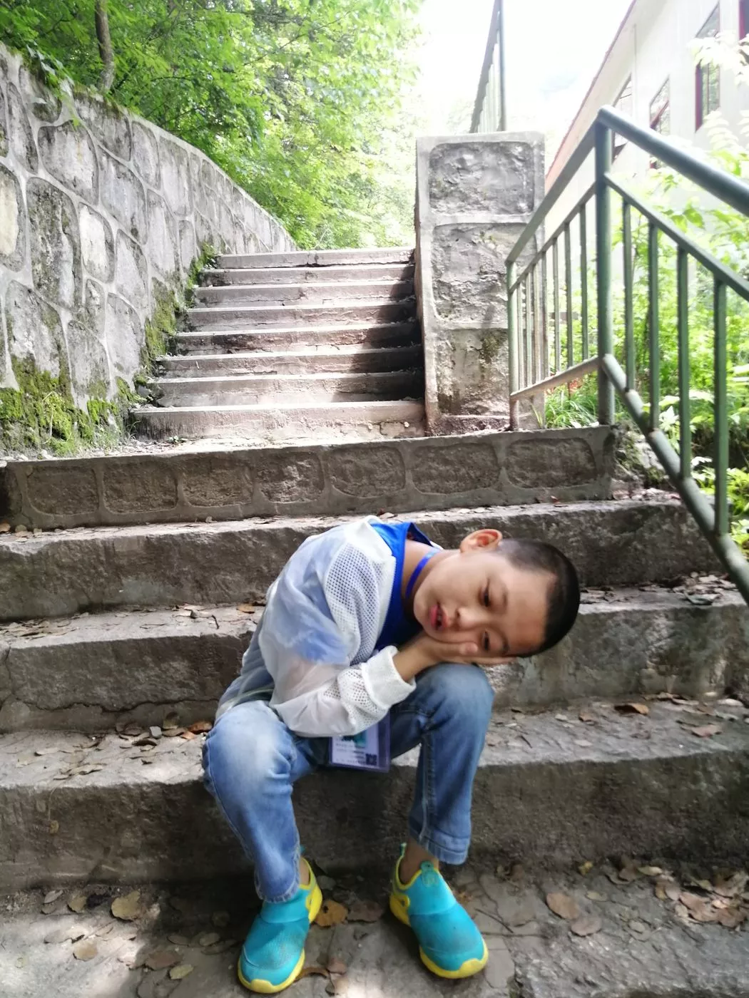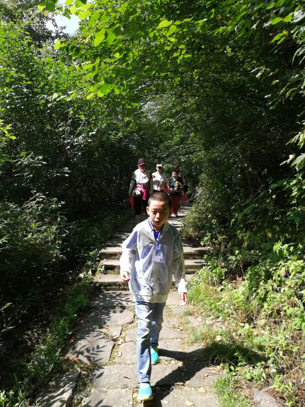 下面这位最小的学员,今年10岁。虽然平日活泼好动,但在返程时累到瞌睡。在下山时每当遇见一位学员,大家都会鼓励"很棒,今天走了很多路,锻炼了不少,辛苦啦,加油!"。看着简单的爬山,却让大家累并快乐着。