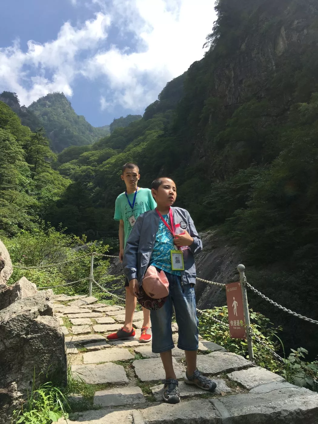 山上的台阶尤其多,走几步就是台阶,但有些学员腿脚不便,在爬山过程中不但是对其身体素质的考研更是对其心理素质的考研,在起初爬山过程中,有些学员的腿都是发抖的,需要身边老师或同伴的搀扶才能完成爬山。