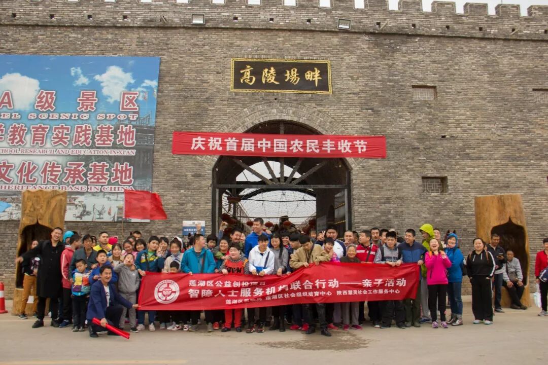 在西安市莲湖区民政局支持下,西安市莲湖区社会组织培育中心指导下,陕西慧灵社会工作服务中心于2018年10月13日,牵头联合10家智障人士服务机构在高陵场畔农耕文化生态观光产业园举办“莲湖区智障人士服务机构联合行动之亲子活动”。参加此次亲子活动的近300人,其中智障人士及其家长240人左右。为了拉近智障人士之间、智障人士与其家长之间、智障人士服务机构之间的距离,活动筹备小组设计了热身活动和拓展活动项目,所有人都能非常开心的投入其中,互动、交流得特别高兴!!