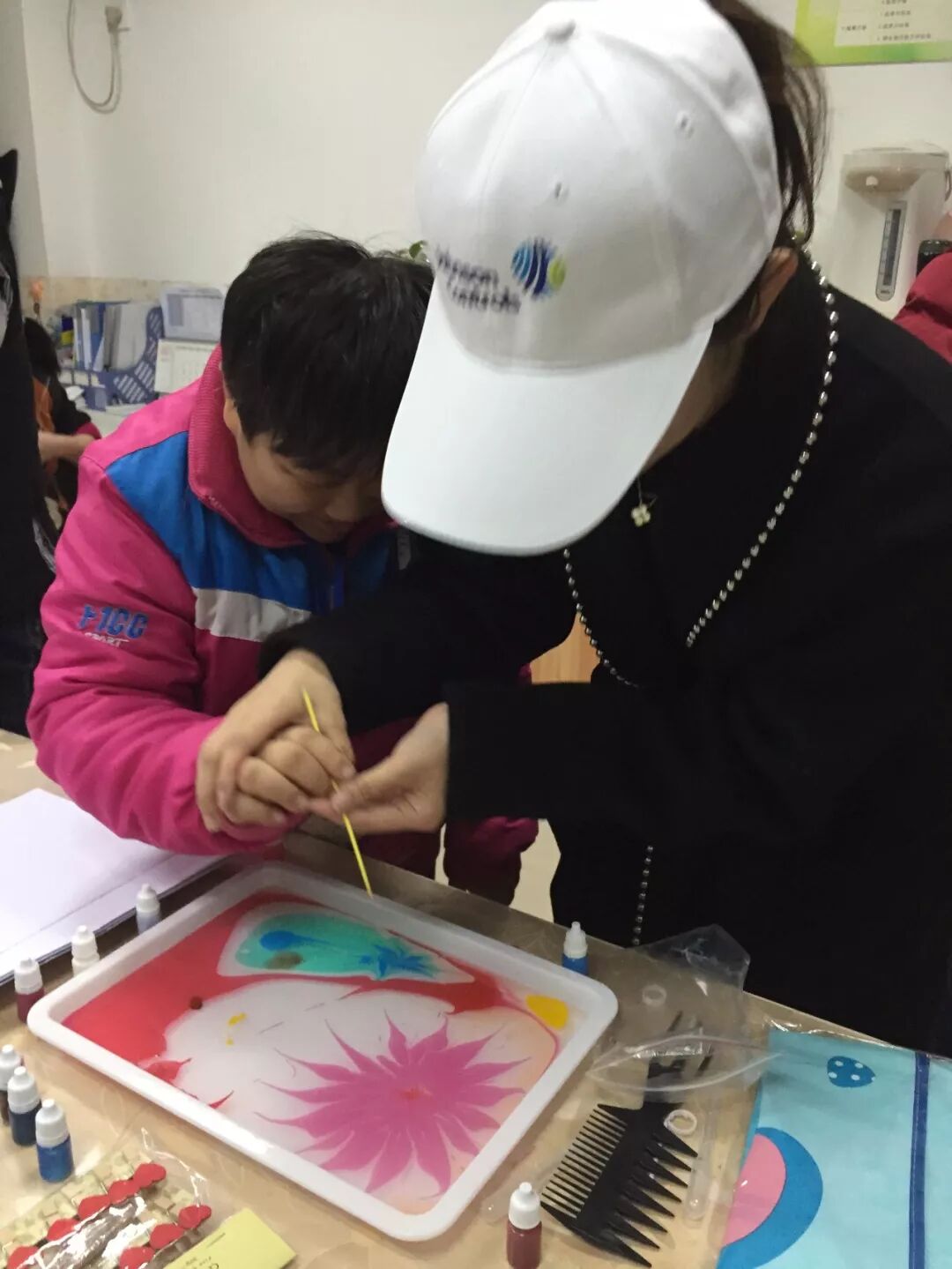 水拓画现场,前方各种创意开始