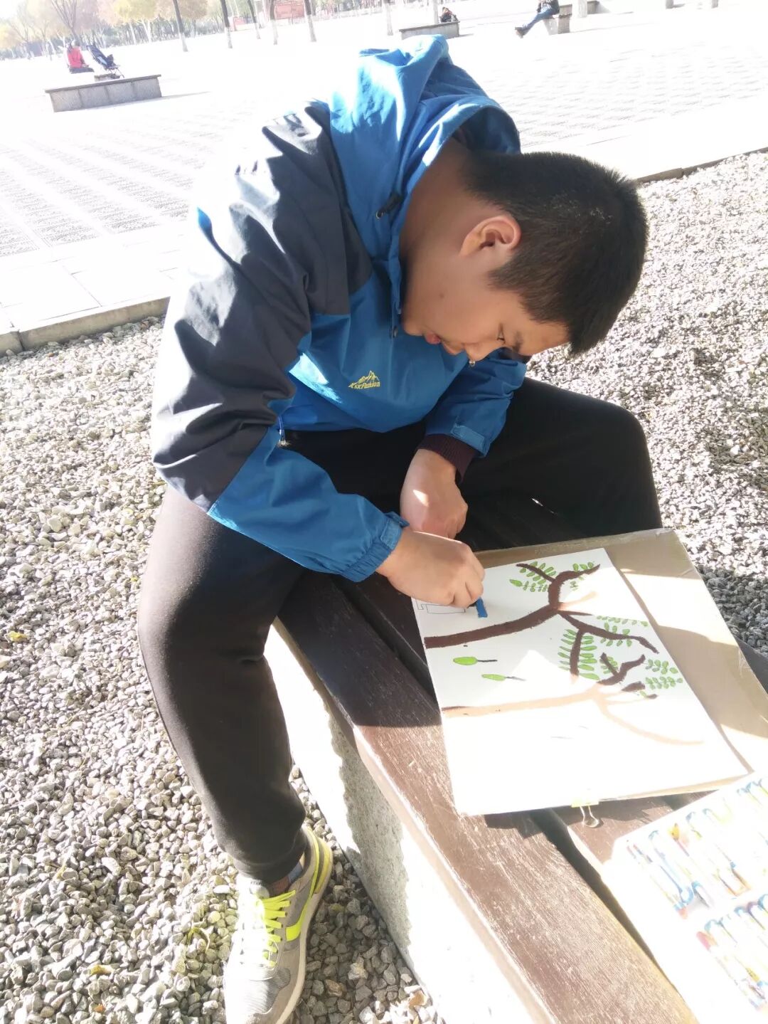 阳光明媚 的下午,慧灵职训中心的小伙伴们,在公益驿站项目的支持下,开展了主题为“遇见不一样的大明宫”的户外写生活动,学员们兴高采烈的样子,认真作画的侧颜,是这冬日阳光里一抹耀眼的光芒,有的在画林荫小道,有的在画广场上放风筝的行人,有的在画气势磅礴的丹凤门,在他们眼里,此刻所有都是最迷人的风景