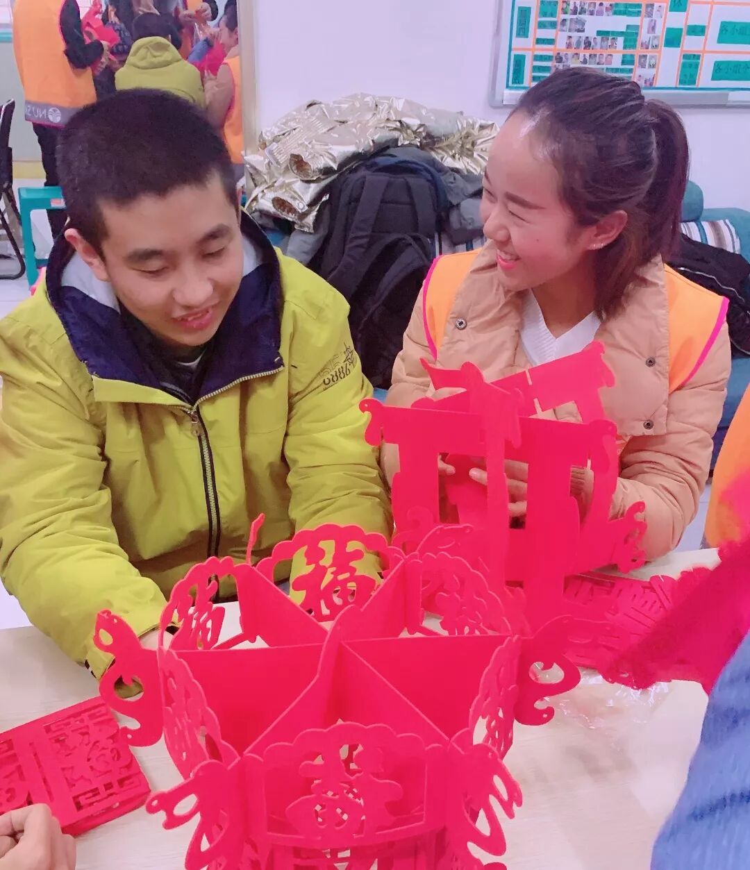 园长说 “蜗”的感谢 慧心阳光家园赵莉园长,向热心致力于公益发展的尚善公益发展中心和乐善汇志愿者表达最诚挚的感谢。赵莉园长还带领所有的志愿者和学员一起回顾暖暖的2018志愿年,一张张照片是志愿服务的记录,一个个笑脸是学员和志愿者的成就时刻,一幕幕陪伴是志愿者最长情的告白,一颗颗爱心是公益的力量。2019,尚善公益将继续携手乐善汇志愿者打造随手益、时时益的公益氛围,尚善公益也邀请您,一起做公益,遇见更好的自己。 志愿者说 相遇“蜗牛” “和这些学员在一起,我能感受到慢下来,感受他们的快乐,我很开心,这样的机会很难得”,志愿者队长马老师动情的说。今天的志愿者团队有一名特殊的志愿者——阿豆,阿豆只有2岁,第一次和爸爸妈妈参加公益活动,“我们热爱公益,也想从小带着他接触公益,传播正能量”阿豆的爸爸认真的说。 一起“摇摆” 一起“摇摆” 萌娃一家唱新年 感恩的心 热情起舞 “蜗”的才艺秀,生活在慧心阳光家园的学员多才多艺,学员的热情吸引了志愿者,跟着学员一起舞动、携手萌娃献唱《新年好》、《感恩的心》、志愿者集体表演,此时此刻,慧心阳光家园成了欢乐的海洋。 手工时光 宫灯祁心愿,洪福至心灵。志愿者们和学员一起组装宫灯、书写对联和福字,志愿者就像呵护花朵般耐心细致的陪伴着学员们,学员们简单纯粹的快乐也感染着每一位志愿者。 分享说 美好的时光总是快乐的,也是短暂的。慧心阳光家园的老师和学员们为所有的志愿者送上代表感谢和祝福的宫灯、对联。活动在一片欢乐和不舍中结束。“谁帮助了谁,我觉得是这些学员帮助了我,学习他们身上简单纯粹的快乐”,“我会在空闲时间过来陪伴这群孩子的”、“我要带着我的同学来感受公益的魅力”、“牵着蜗牛去散步,感受他们的无为和慢节奏的生活”……志愿者们如是说。