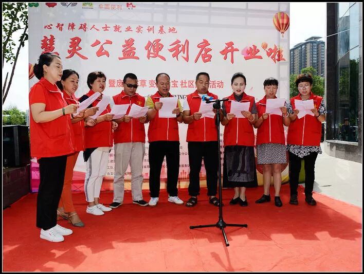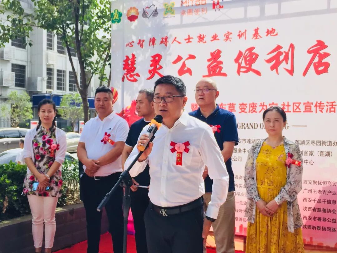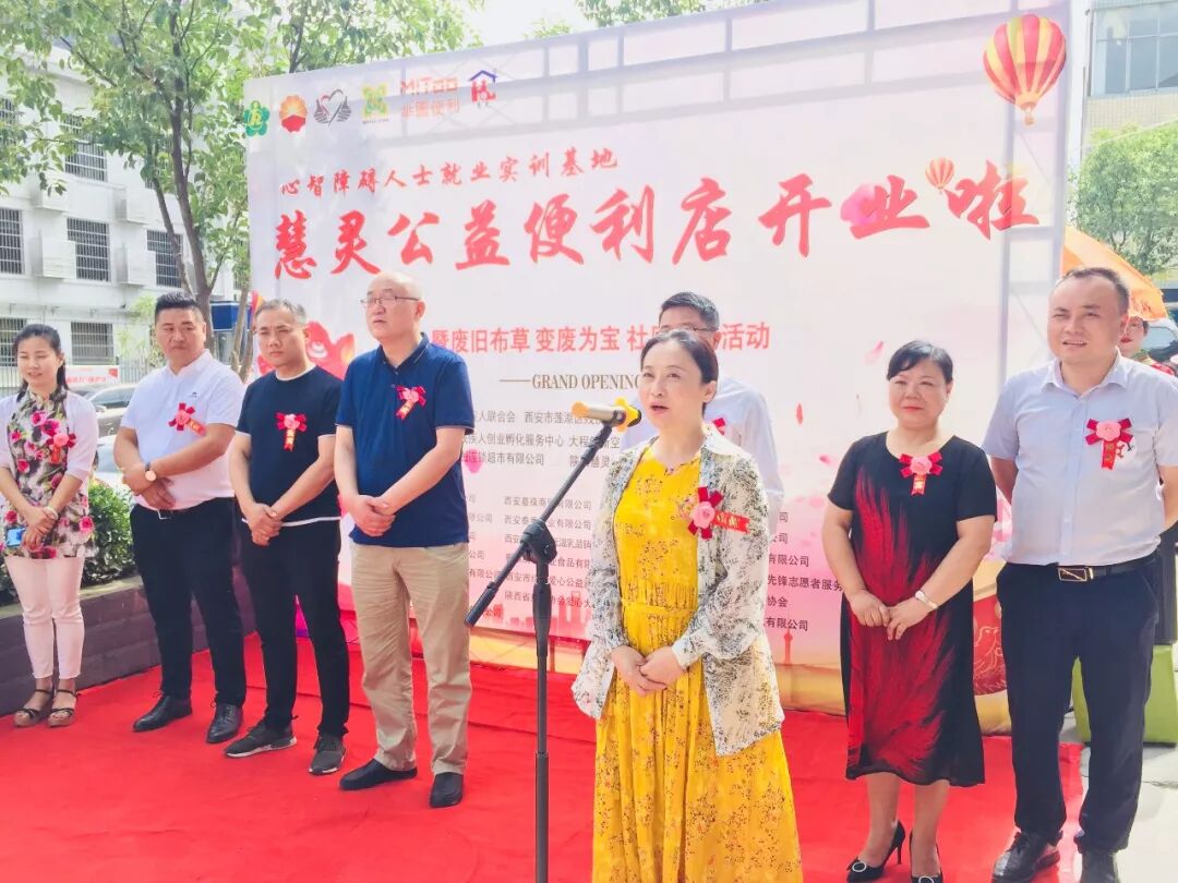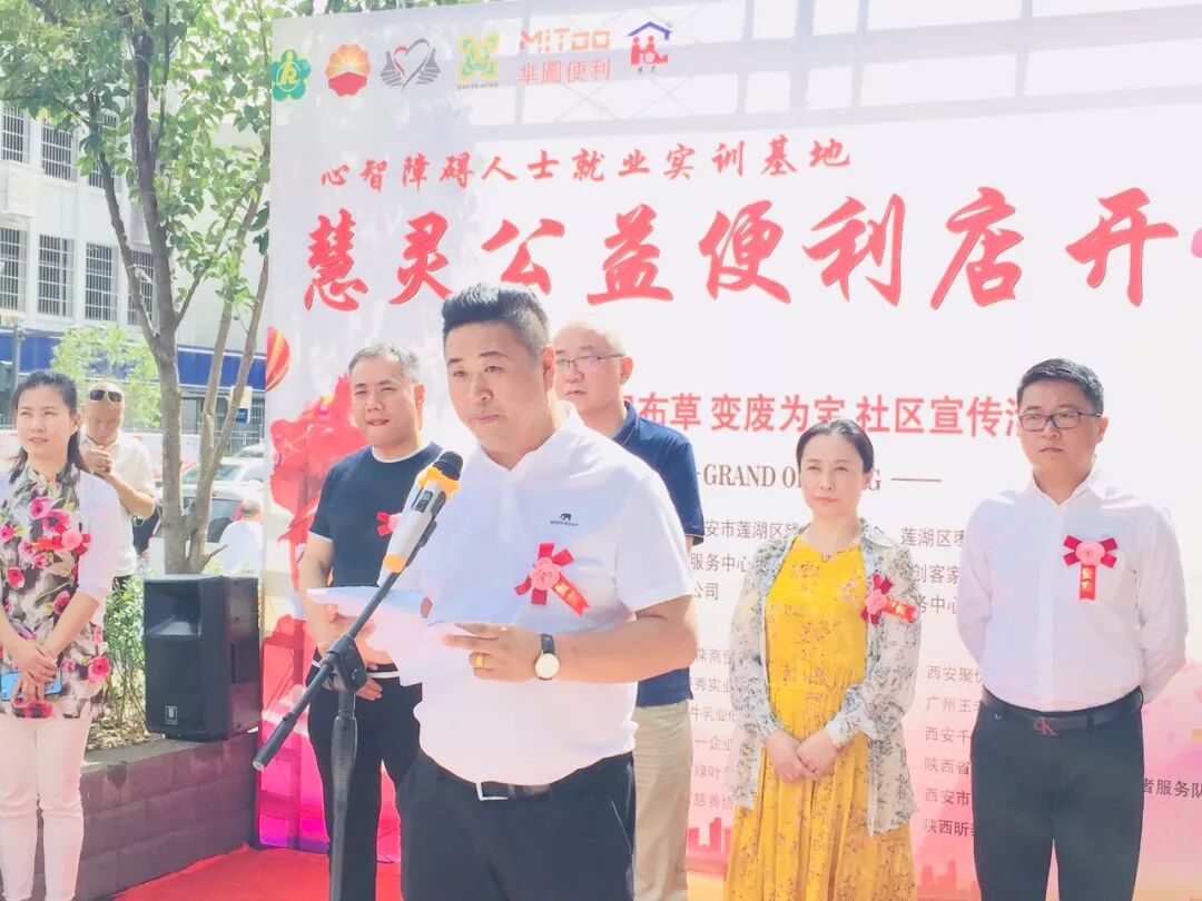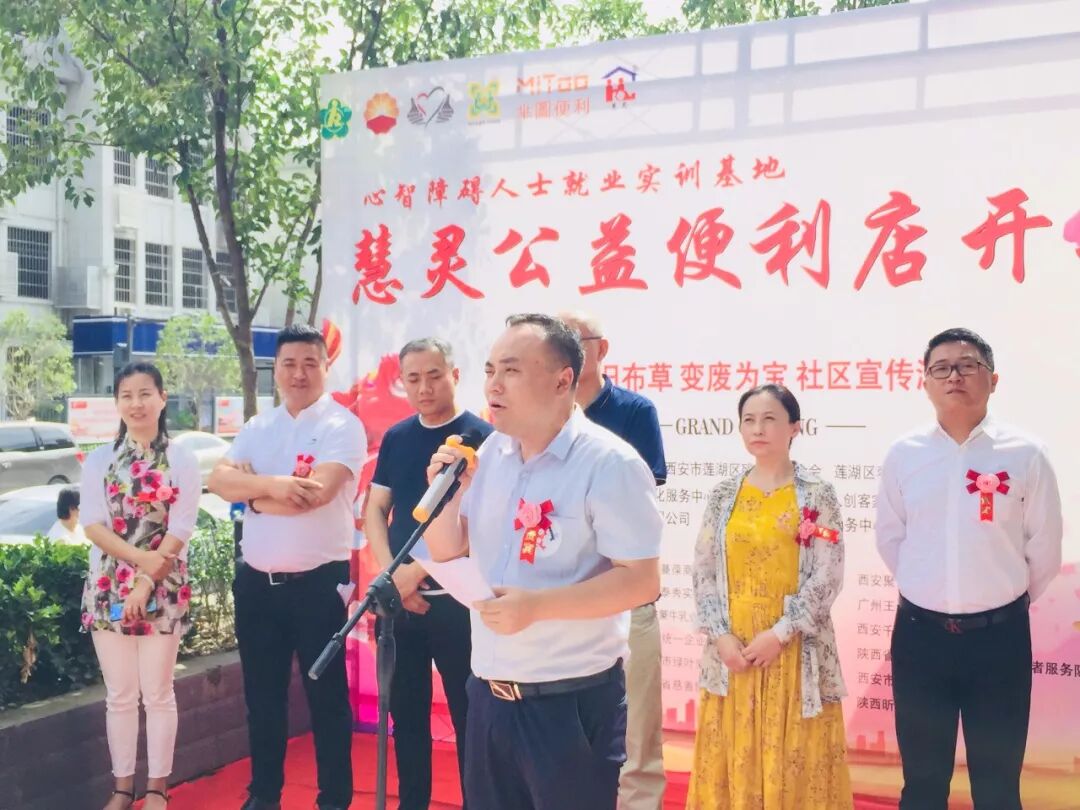 2019年6月29日上午,慧灵公益便利店开业啦,莲湖区残疾人联合会郭文生理事长、莲湖区残疾人联合会侯庆副理事长、莲湖区枣园街道办事处张琦主任、莲湖区残疾人就业处权芳主任、莲湖区智力及亲友协会杨琪主席、大程创新创业产业集团执行石磊总裁、陕西芈图连锁超市有限公司胡丰董事长、陕西慧灵社会工作服务中心蔡景华总干事等领导共同参与此次活动的剪彩仪式。