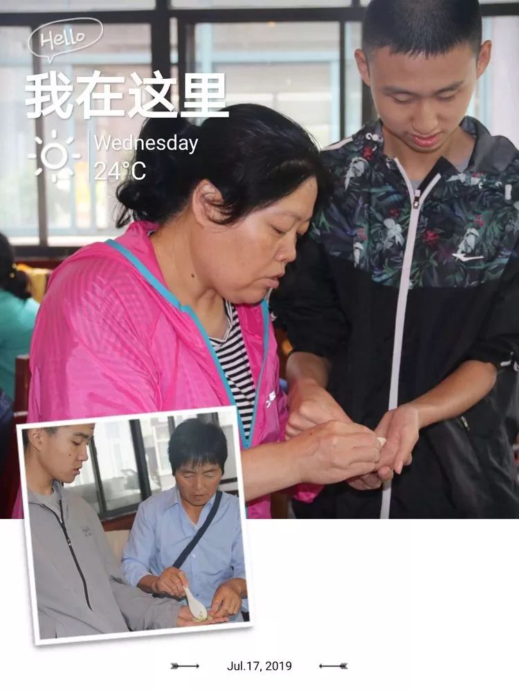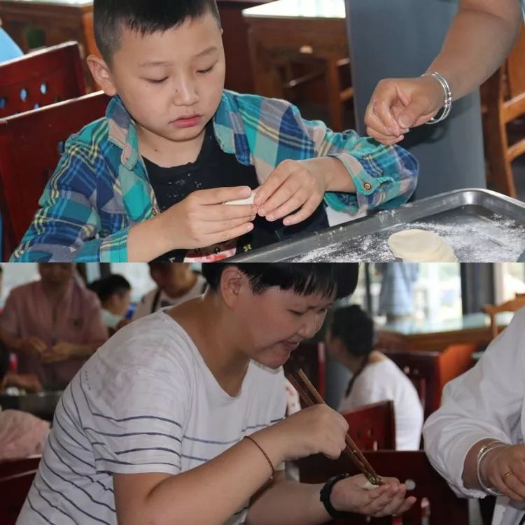 部分学员对包饺子很感兴趣,平日在机构老师也会训练学员基础生活技能,其中有一项就是包饺子。这次遗憾的是没有带包饺子辅具,导致部分学员难以参与包饺子。对心智障碍人士而言,辅具是他们探索生活的一把钥匙🔑,可以让他们轻松参与生活、发挥自身角色。当然,没有辅具支持就要人力替代,下面工作人员正手把手协助学员包饺子🥟。