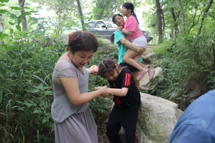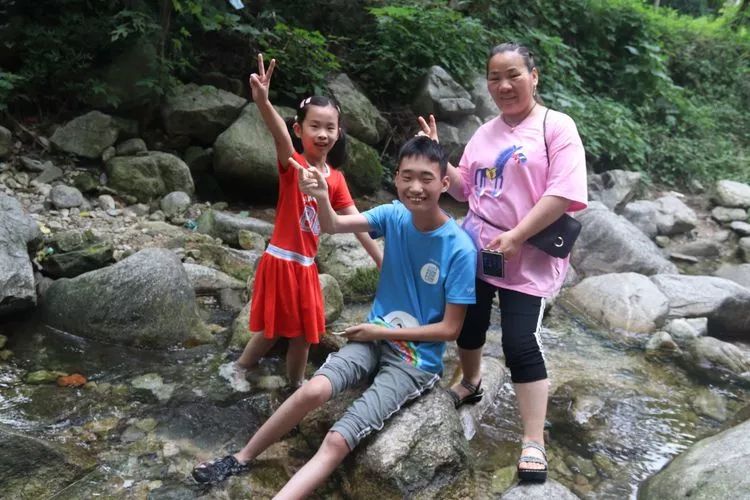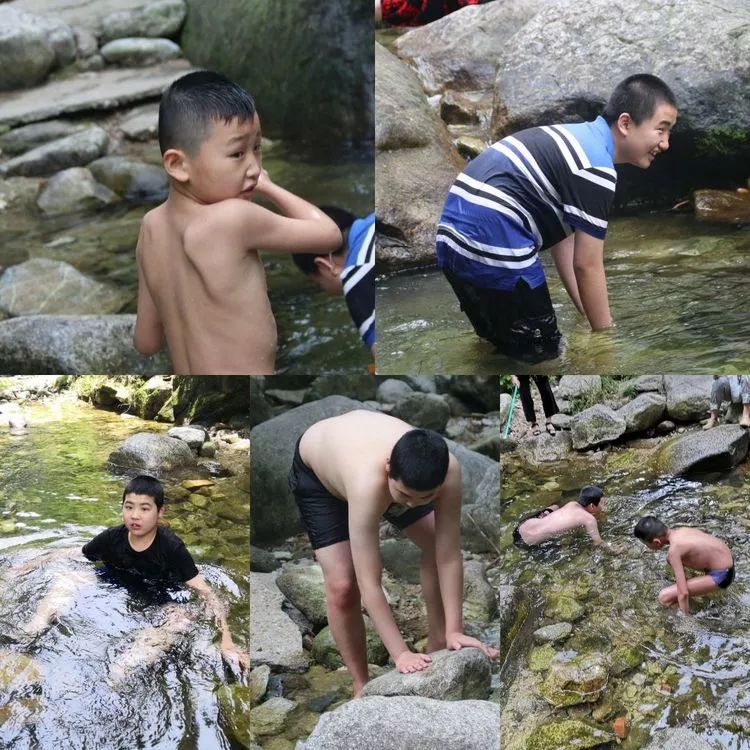 放下行囊,大家都迫不及待来到祥峪河里嬉水。浅浅河水、涓涓细流,学员们安心在水里享受时光。