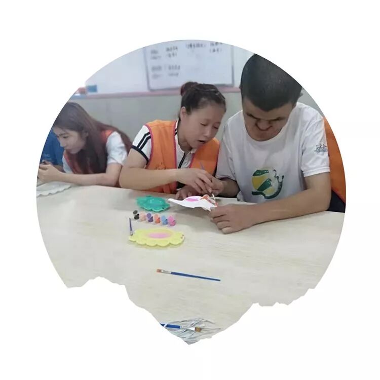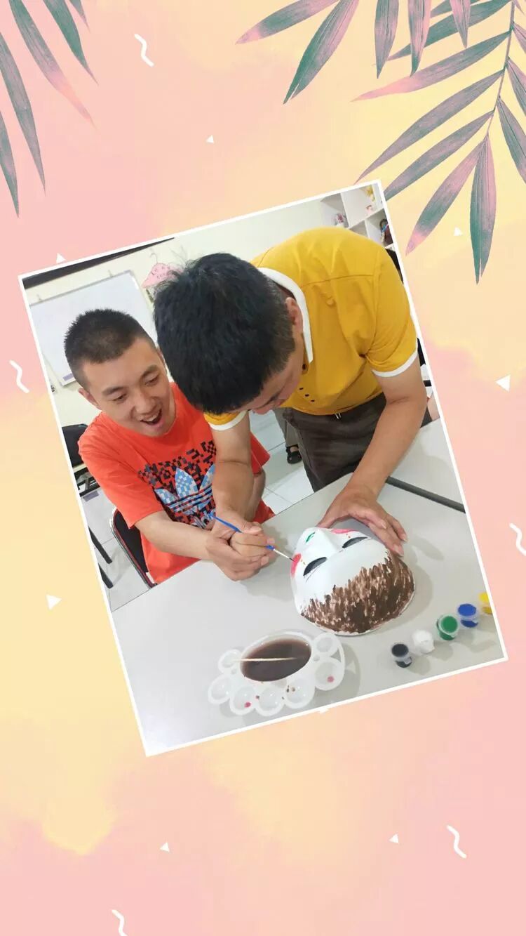 活动在学员和志愿者们的默契配合下结束了,学员们在志愿者的协助下,或是画面具,或是给瓶子换造型,最后都完整的做完了。感动我们学员的坚持,感谢志愿者们的陪伴。