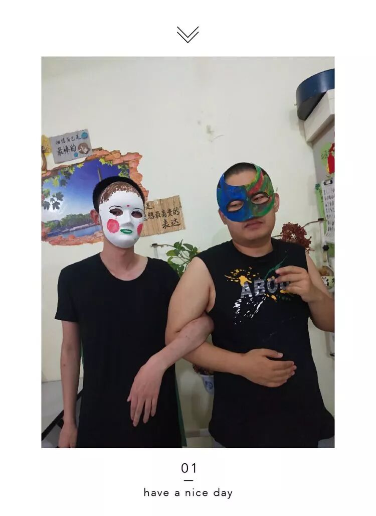 大家看一下我这个面具是不是有点恐怖呢?嘻嘻,不要怕哦,我和老师画好后就很漂亮了