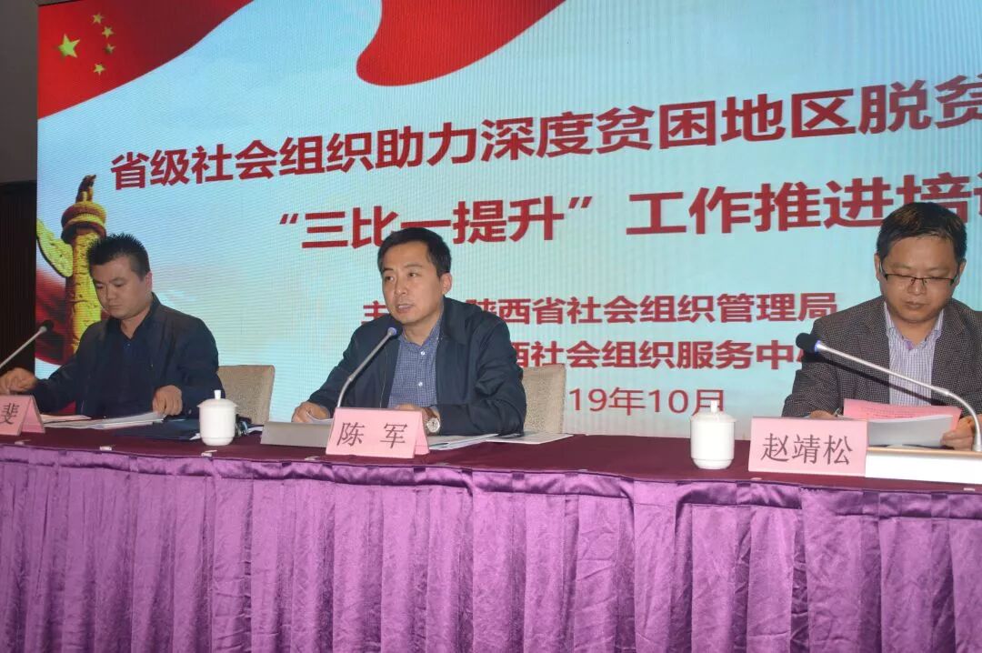 10月11日-12日,省级社会组织助力深度贫困地区脱贫攻坚合力团“三比一提升”工作推进培训会在西安召开,省民政厅副厅长陈军参会并做重要讲话。