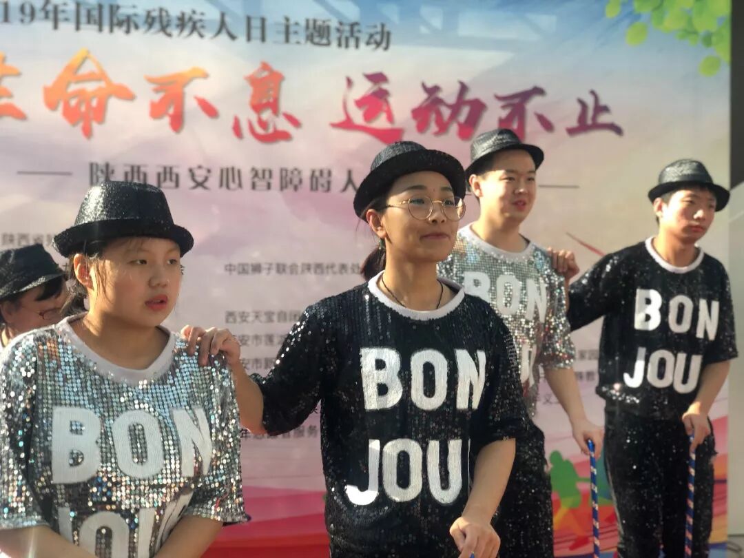 在第28个国际残疾人日这一天,来自陕西省14家特殊教育机构的103位心智障碍人士走出家门,走出机构,走入社会,在志愿者的陪伴下参与协同作战、十字跳等6个趣味运动项目。