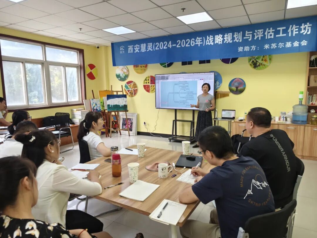 在德国米苏尔社会发展基金会和北京境外非政府组织发展服务中心的支持下,8月27日至28日,西安慧灵组织了2024-2026年战略规划与评估复盘工作坊。本次工作坊邀请深圳市守望心智障碍者家庭关爱协会秘书长张凤琼全程主持。本次工作坊是对2023年11月16日-18日首次工作坊战略规划成果的再回头、再讨论和再调整。工作坊紧密结合本市残疾人服务政策、行业发展动态,回应家长需求,以小组讨论和集中梳理的方式,充分讨论了西安慧灵未来三年的战略规划,并进行了服务模块和组织机构调整的初步讨论。